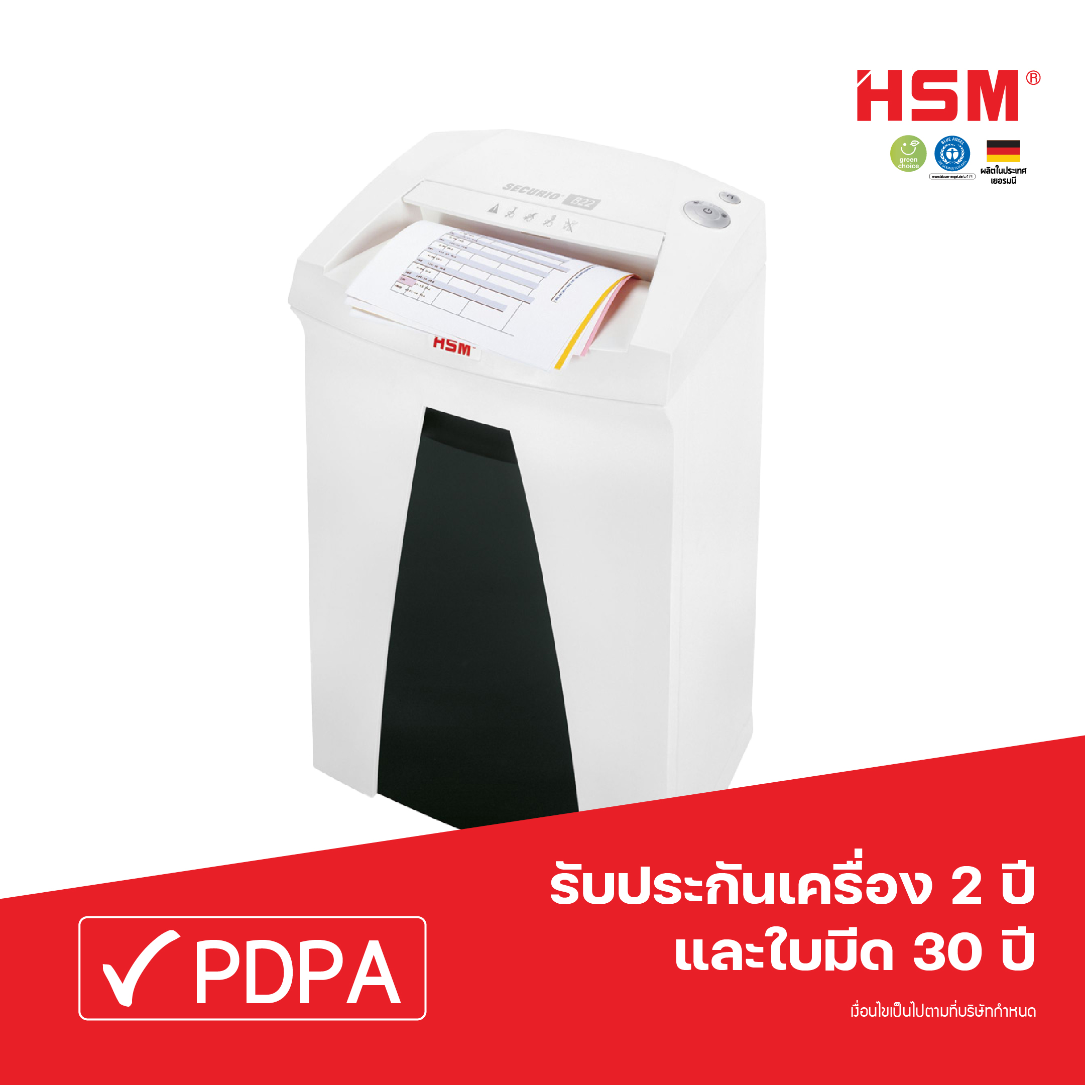 เครื่องทำลายเอกสาร HSM SECURIO B22 (3.9 mm) สำหรับแผนกที่มี 8-10 คน